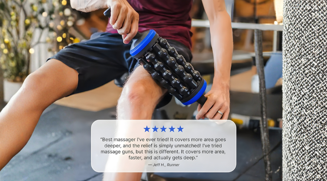 With 5 adjustable intensity levels, you can start at the gentlest setting and gradually increase as your muscles respond. The rolling action distributes pressure evenly across a larger surface area compared to massage guns, preventing the painful "jabbing" sensation that other devices can cause. Most users describe the sensation as a pleasant deep-tissue massage that releases tension without discomfort.
